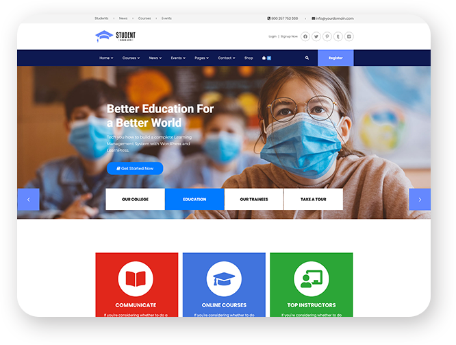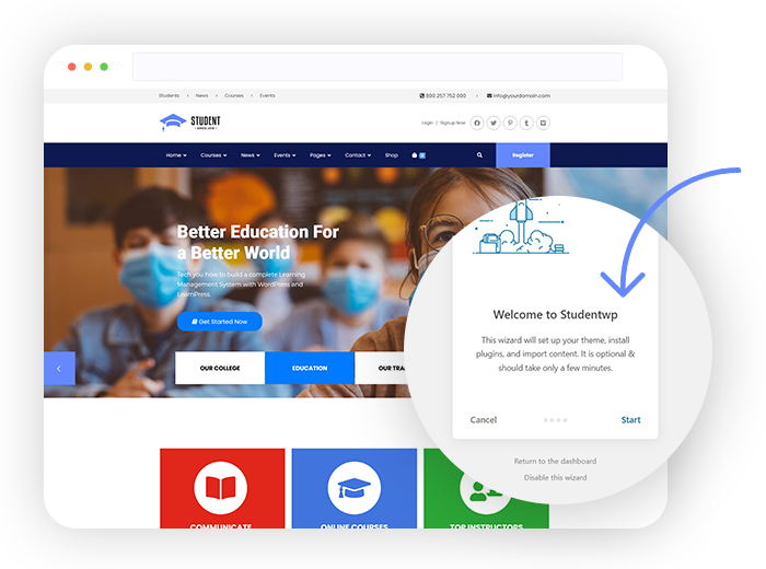 Student WP theme comes with One click demo installation so start a wizard and content is ready within few minutes.